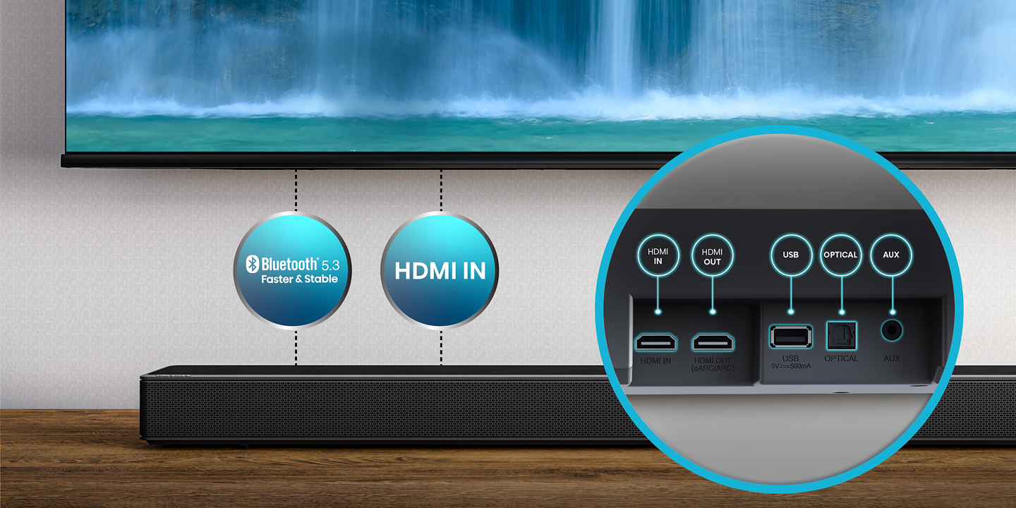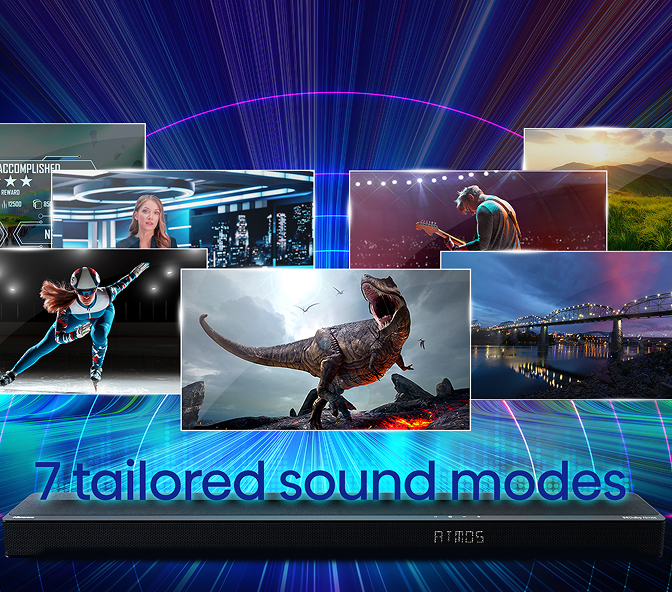 Al integrated technology, optimises the sound source from different media for the perfect listening experience. Or utilise the pre-set equalizer modes – Movie Mode, Music Mode, Night Mode, News Mode, Sports Mode, Game Mode and AI Mode.