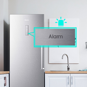 The fridge has a Door Alarm function to alert you when the temperature in your fridge or freezer rises too high. If you accidently leave the door open, it reminds you to close the door in time to stop the cool air from running away.