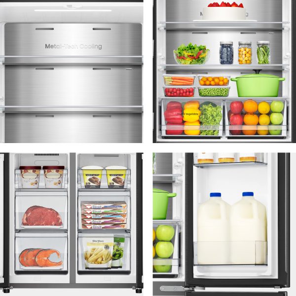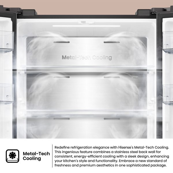 Redefine refrigeration elegance with Hisense Metal tech cooling. This ingenious feature combines a stainless steel back wall for consistent, energy efficient cooling with sleek design, enhancing your kitchens style and functionality. Embrace new standard of freshness and premium aesthetics in one sophisticated package.