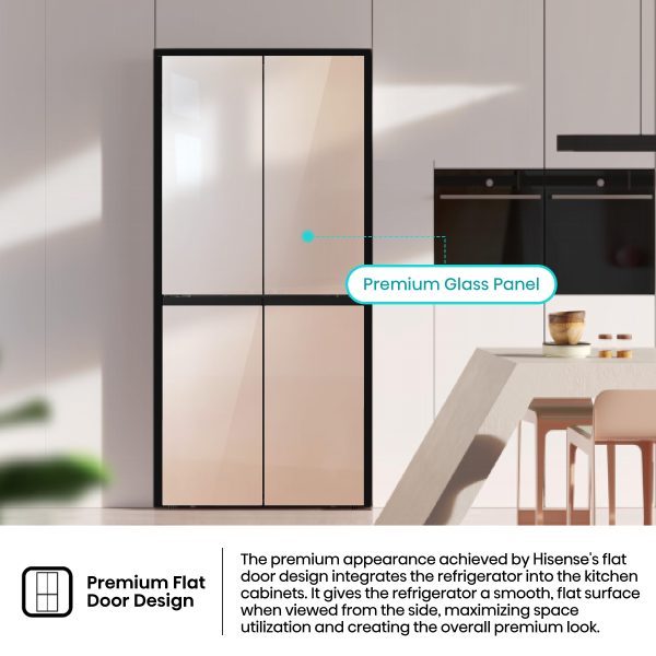 The Premium appearance achieved Hisense flat door design integrates the refrigerator into the kitchen cabinets. It gives the refrigerator a smooth, flat surface when viewed from the side, Maximize the space utilization and creating the overall premium look.