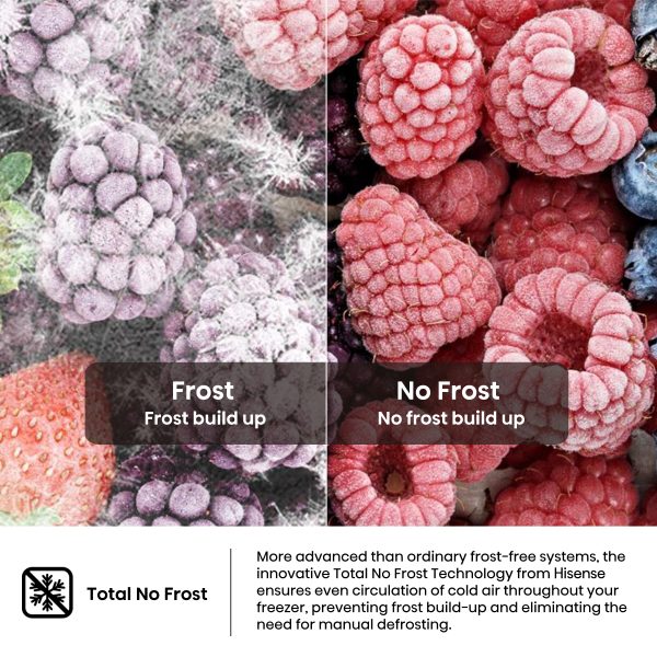 More advanced than ordinary frost-free, the innovative Total No Frost technology from Hisense circulates cold air throughout your fridge to prevent crystals from forming, so there’s no need to defrost.