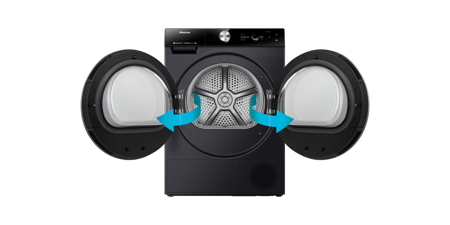 Enjoy ultimate flexibility with our interchangeable and adjustable door feature. Choose whether your dryer opens to the left or right, adapting effortlessly to any space or laundry layout. This customization gives you complete control over your setup, ensuring maximum convenience and functionality.