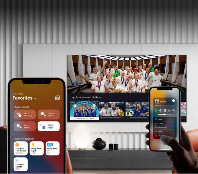 Newest consoles, faster data transmission and lower lag. Add all external devices with state of the art wireless and wired connectivity. WiFi6E, HDMI 2.1, AirPlay, Bluetooth, Share to TV, WISA Ready