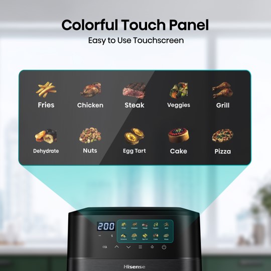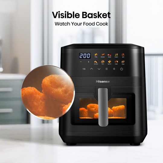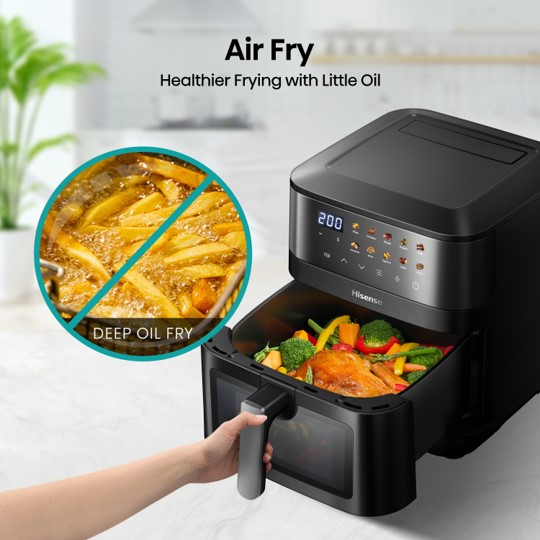 Hisense air fryers use hot air to cook your favorites foods, but healthier.  Hisense gives you that perfect crispy golden finish without the fat and oils which come with deep frying.